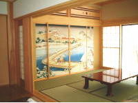 | 施主様のご希望で襖絵に葛飾北斎の絵を取り入れました落ち着いた和室がまるで美術館のような空間になりました。 |