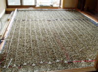 床下に土間コンクリートや断熱材を貼り自然石を敷き詰めマグネシュームヒーターを設置します熱を逃がさぬようにしっかりと設計されています。耐用年数はほぼ永久です。 |