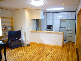 1日の大半をリビングで過ごすU様ご夫妻、これからの生活を考えて、1階リビングに床暖房オンドルコンフォートを設置しました。オンドルなら体の芯から温まりますので、他の暖房器がいらなくなり、月々の光熱費を抑えることができます。寒い冬でも体はいつもぽかぽかですので、体を動かすのも辛くなくなります。ご年配の方には、本当にお勧めなんですよ!またIHクッキングヒーターはお掃除が簡単でお魚焼きも楽にできます。慣れてきたらいろんなお料理に挑戦したくなりますよ!!